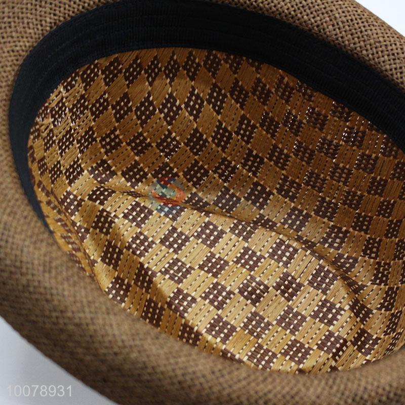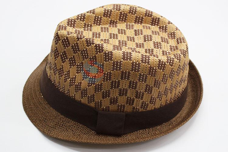 Men Summer Vintage Grid Pattern Paper Straw Sun Hat Beach Hat