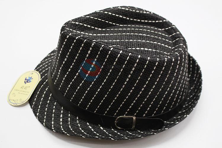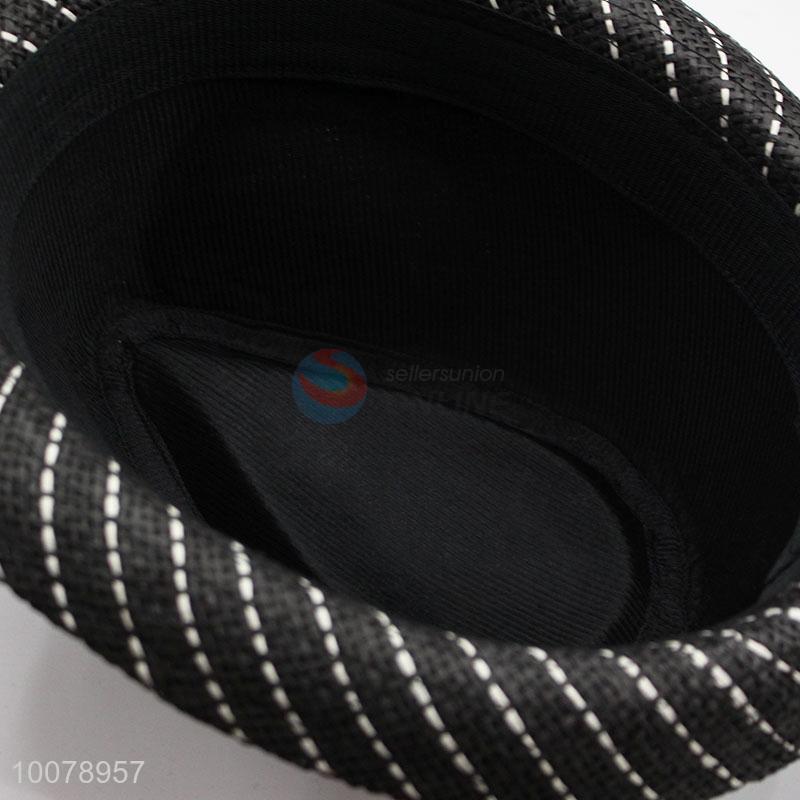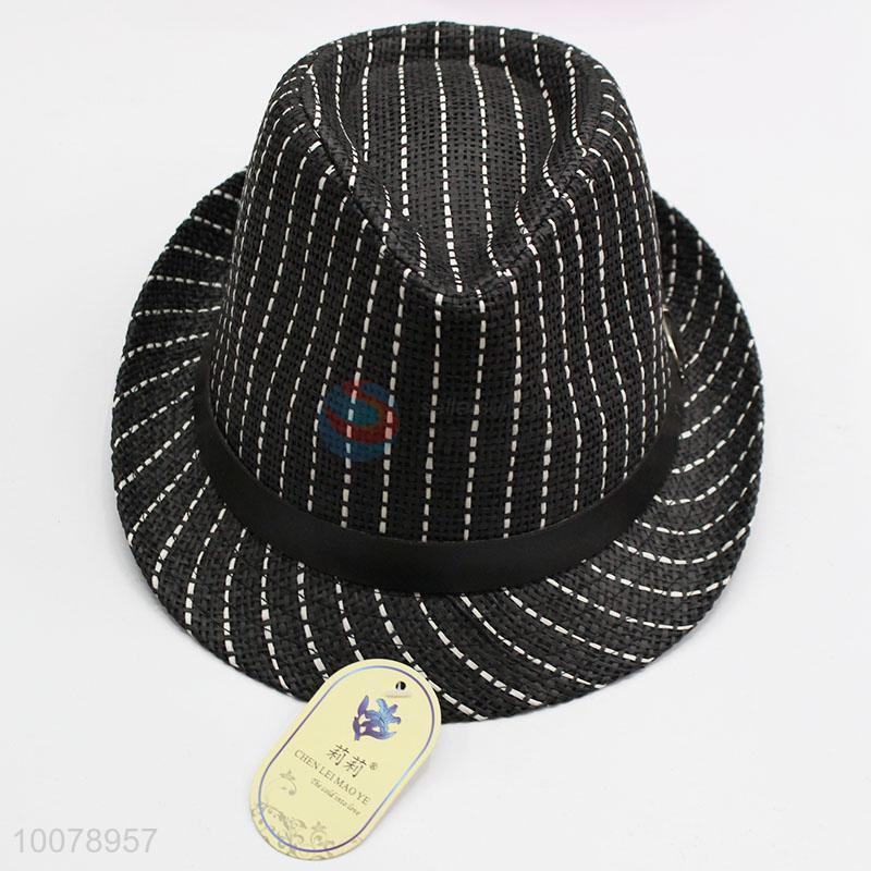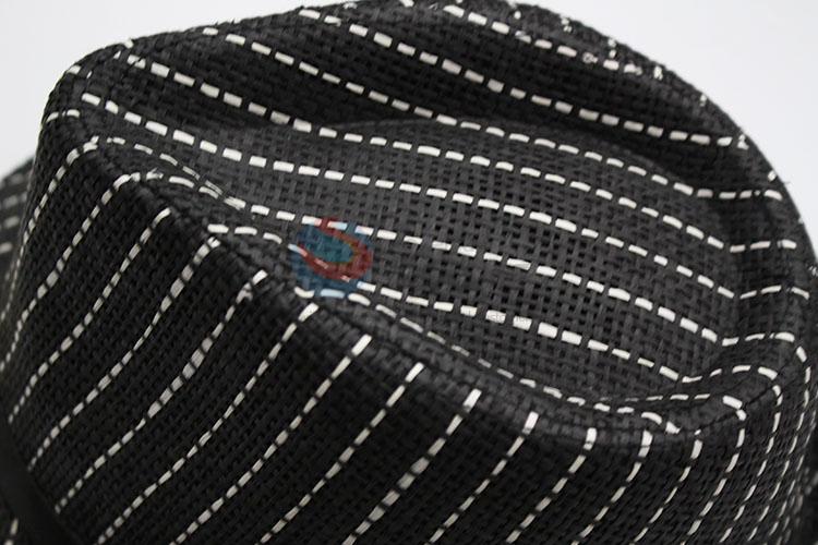 Promotional Black Striped Panama Straw Hat Sun Cap