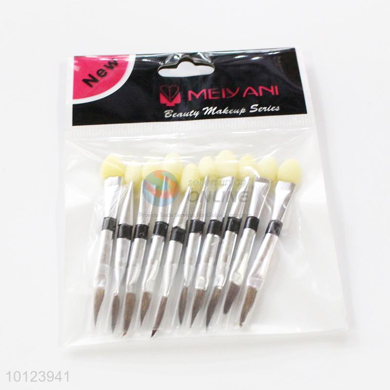 10 pcs Silvery Handle Makeup Brush for Cosmetic Double Ended Eyeshadow Brush Set