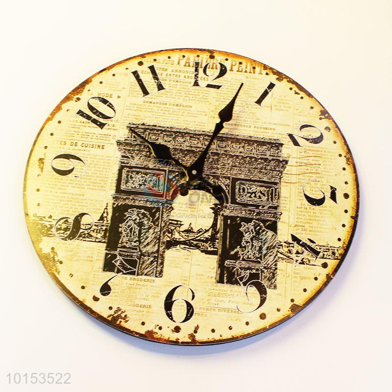 Round Shaped Triumphal Arch Pattern Room Decoration Wall Clock for Living Room