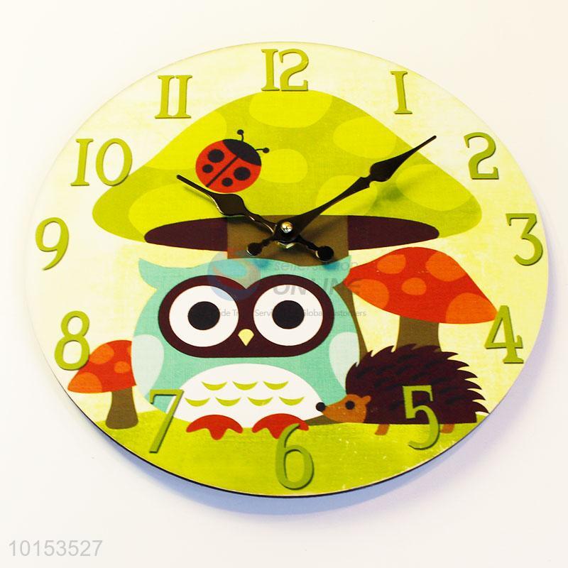 Exquisite Cartoon Owl and Hedgehog Pattern Wall Clock Living Room Decoration