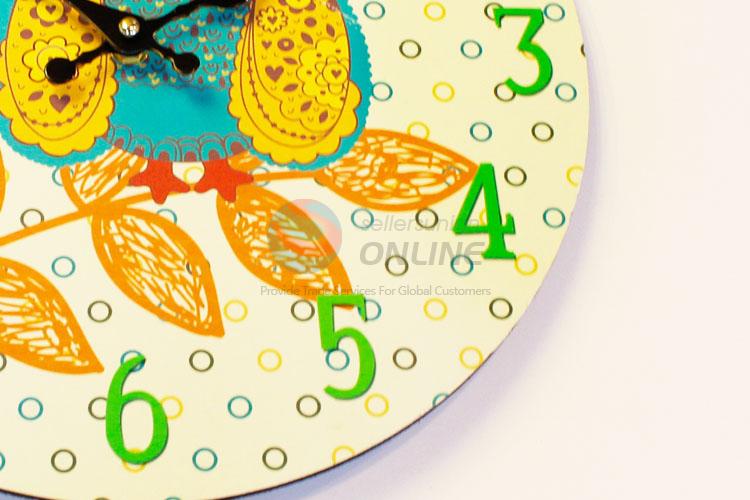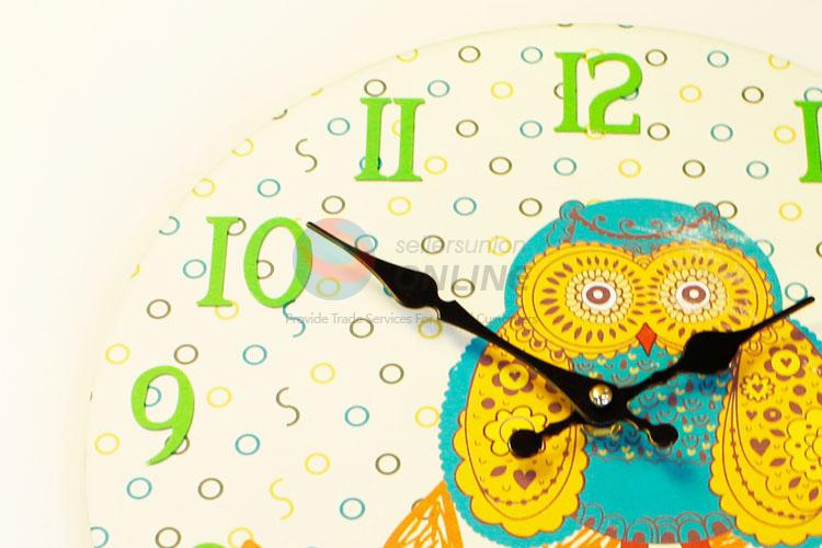 Round Shaped Colorful Cartoon Owl Pattern Wall Clock Board Clock for Home Decoration