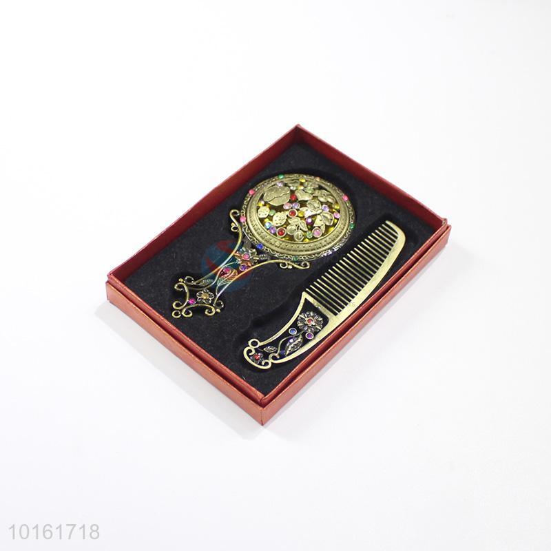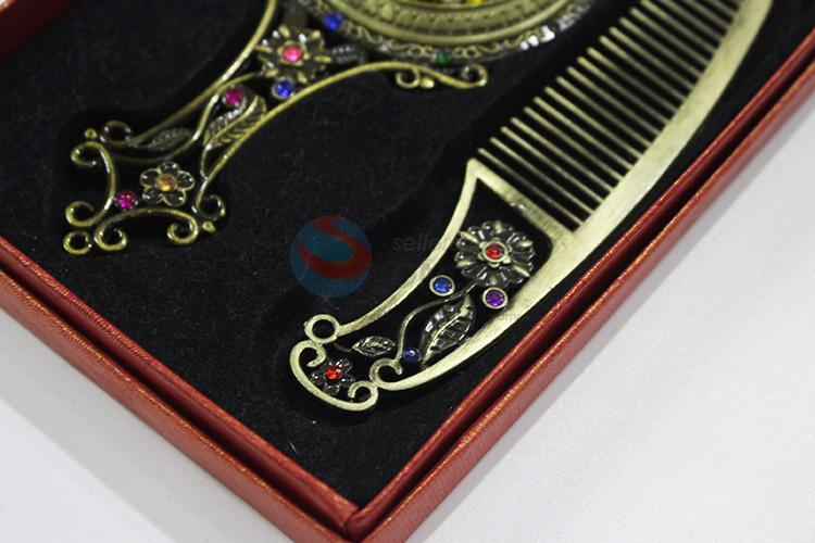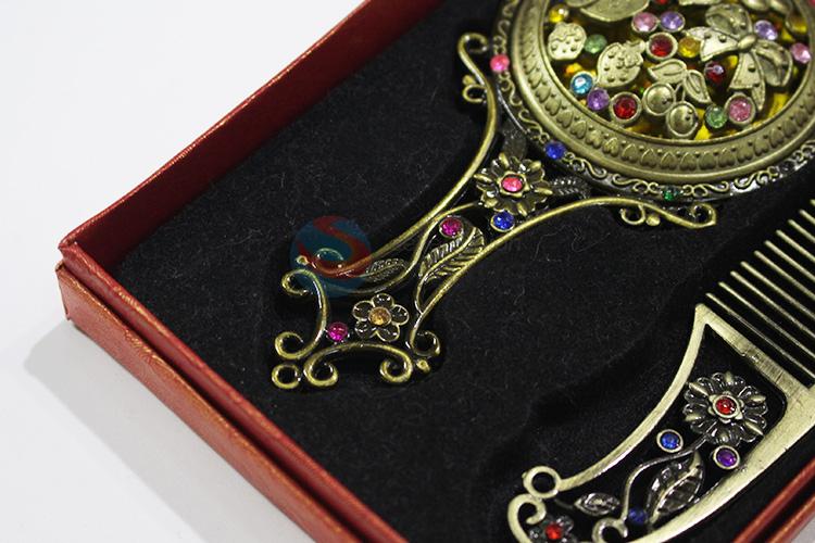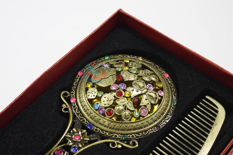 Low price retro colorful stone mirror and comb set