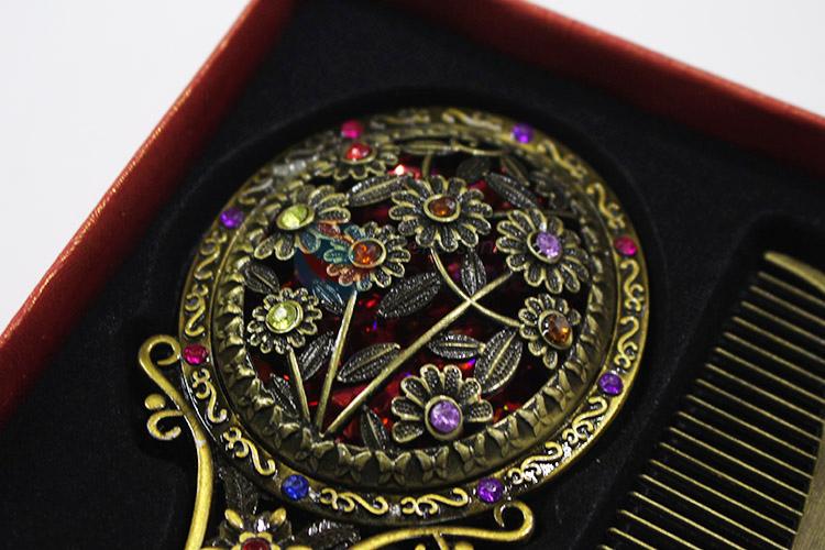 Recent design retro colorful stone mirror and comb set