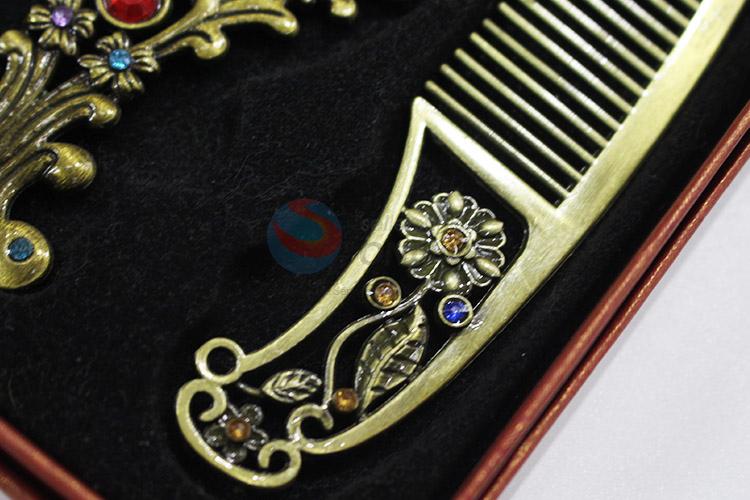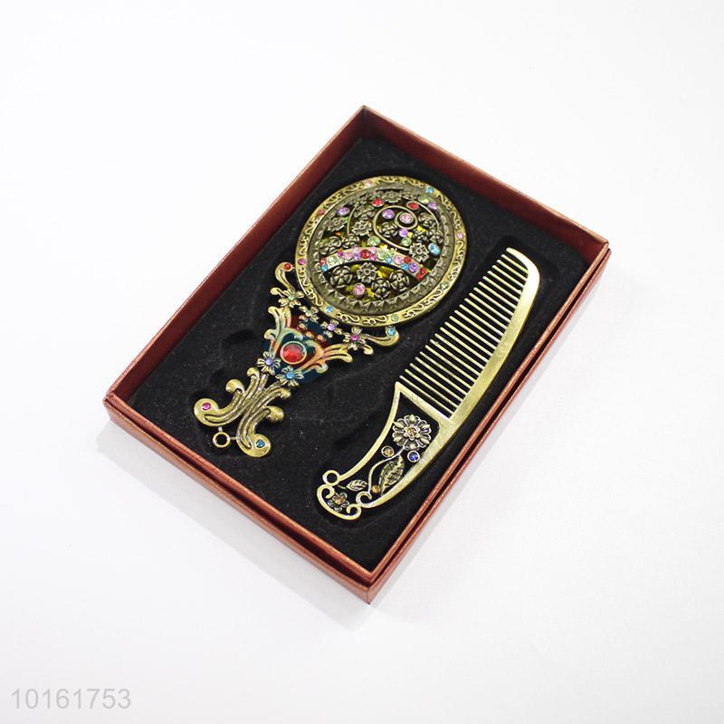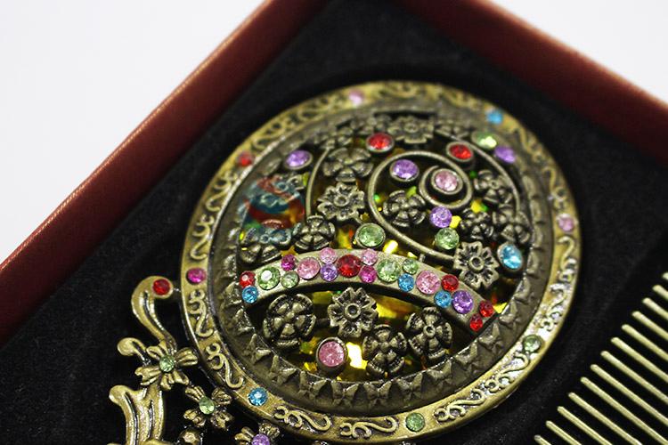 Popular design elegant retro colorful stone mirror and comb set