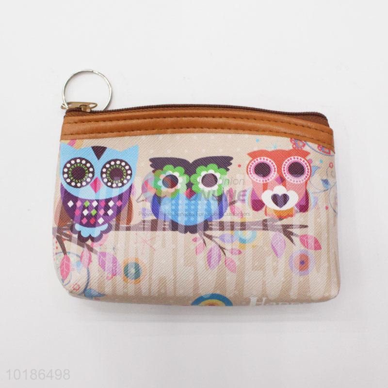Cute Cartoon Owl Pattern PVC with Lining Coin Bag Mini Purse