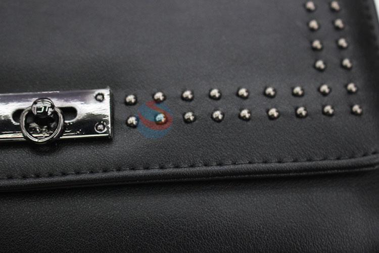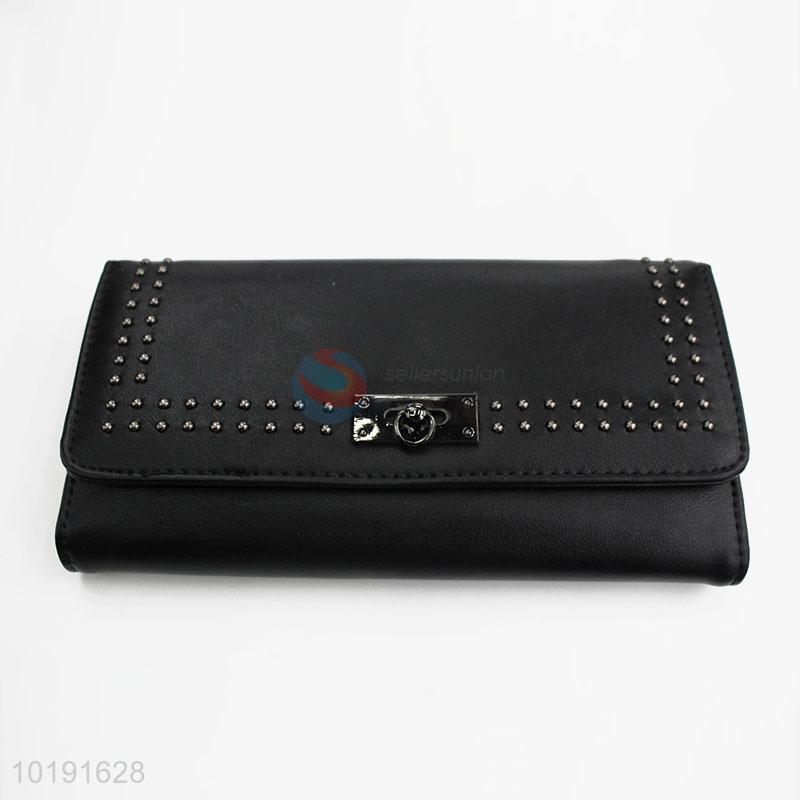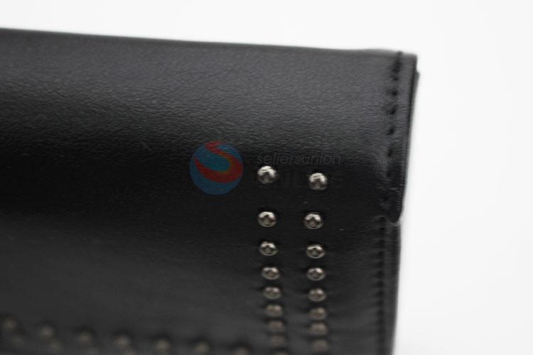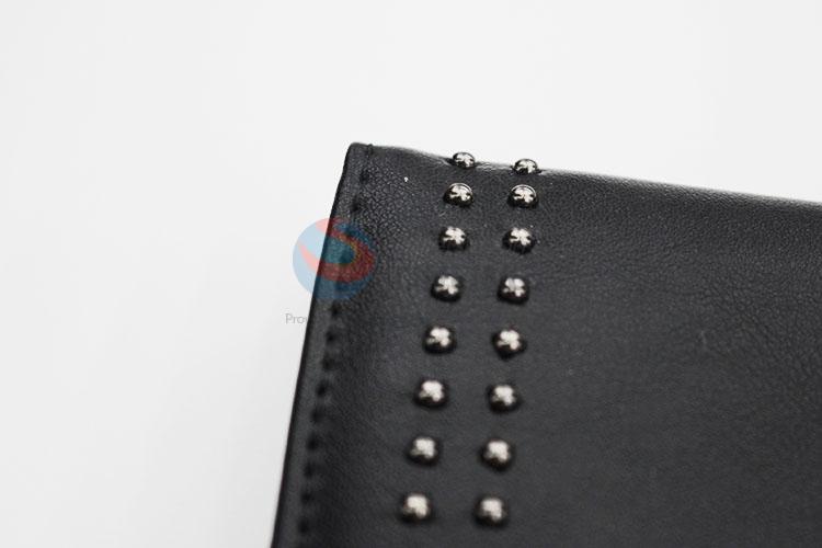 Fashion Rivets Design PVC Leather Women Folded Long Wallet Purse