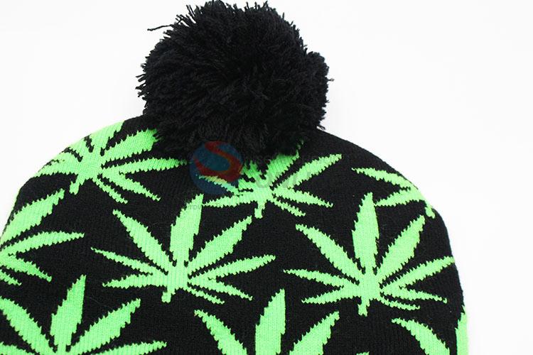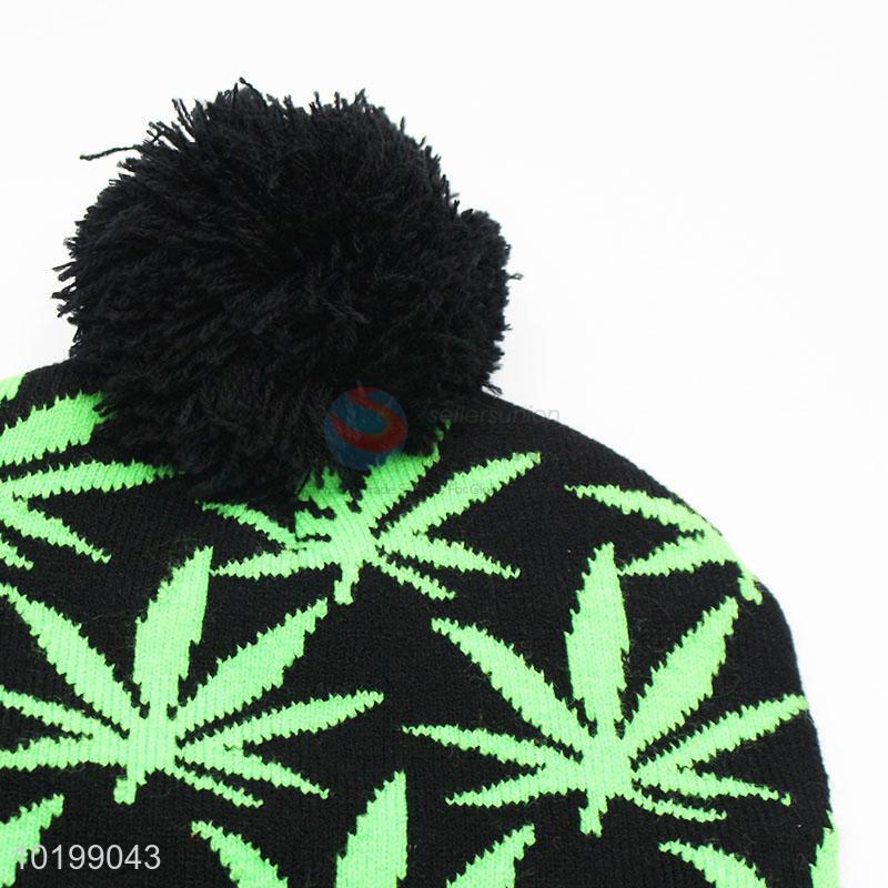 Black maple pattern winter hat/acrylic knitted hat with top ball