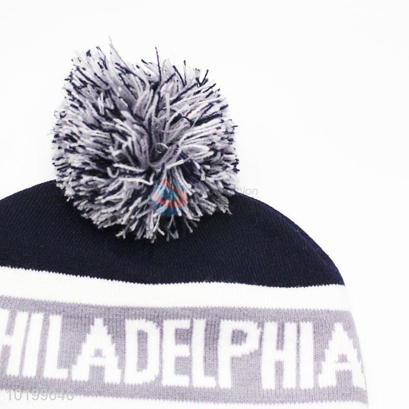 Promotional warm winter hat/acrylic knitted hat with top ball