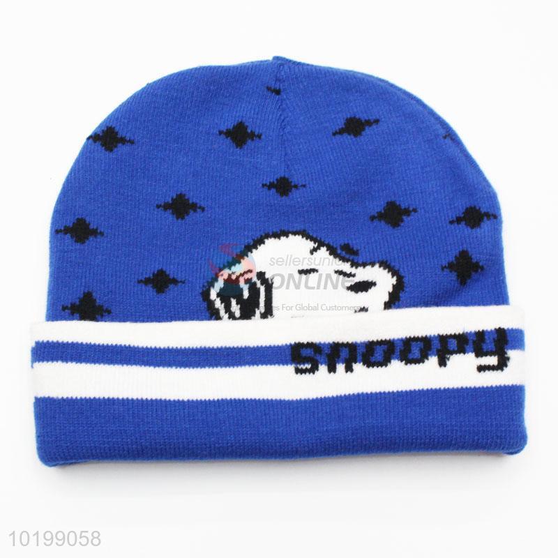 Wholesale blue dog pattern knitted hat for kids