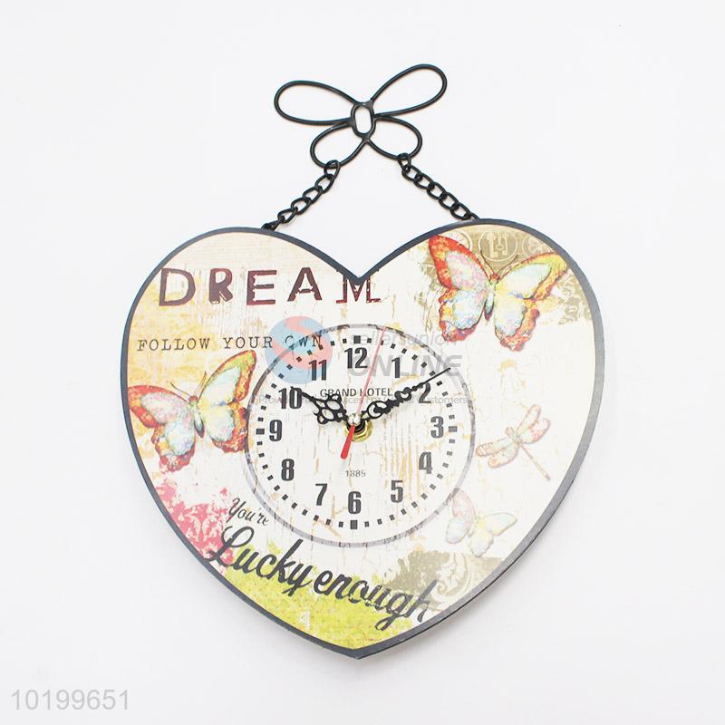 Best selling popular wooden heart shape wall clock