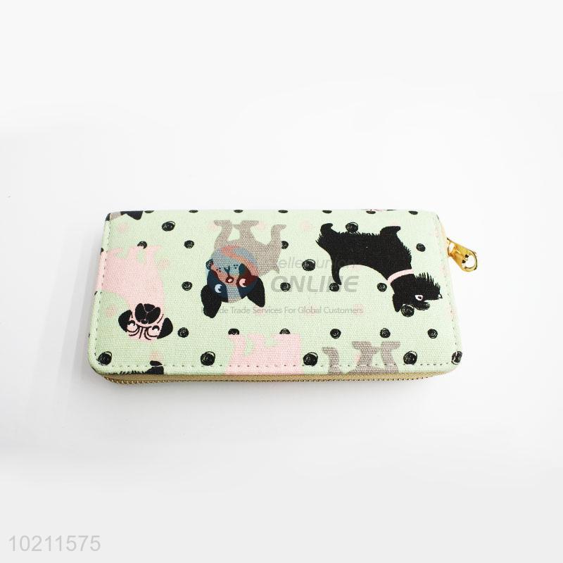 Cute Dog Pattern Canvas Purse&Wallet with Brass Zipper for Sale