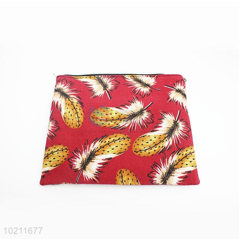 Promotional Feather Pattern Canvas Clutch Bag for Sale