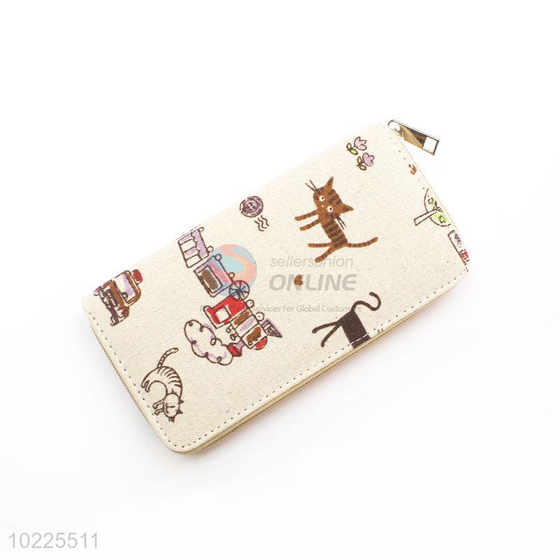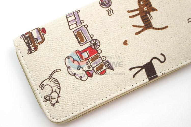 Lovely Cat Pattern Canvas Purse&Wallet with Polyester Zipper for Sale
