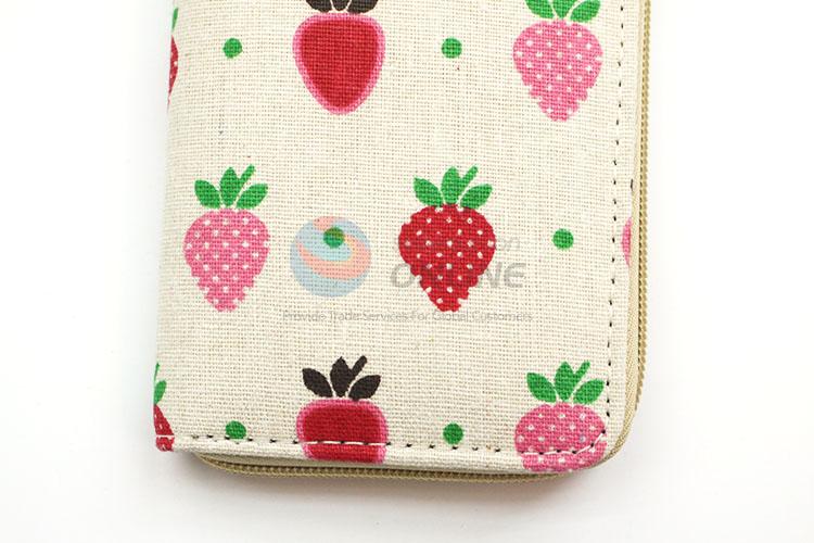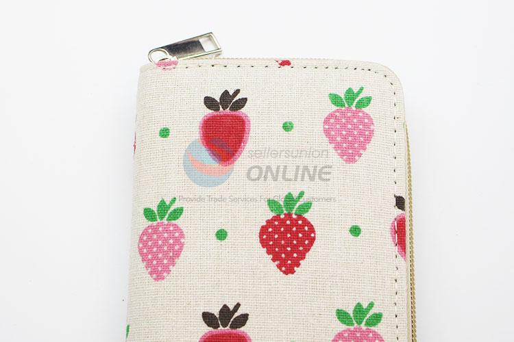 Nice Strawberry Pattern Canvas Purse&Wallet with Copper Zipper for Sale