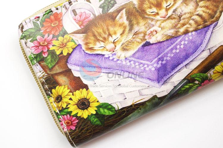 Cute Cat Printed PVC Purse&Wallet with Copper Zipper for Sale