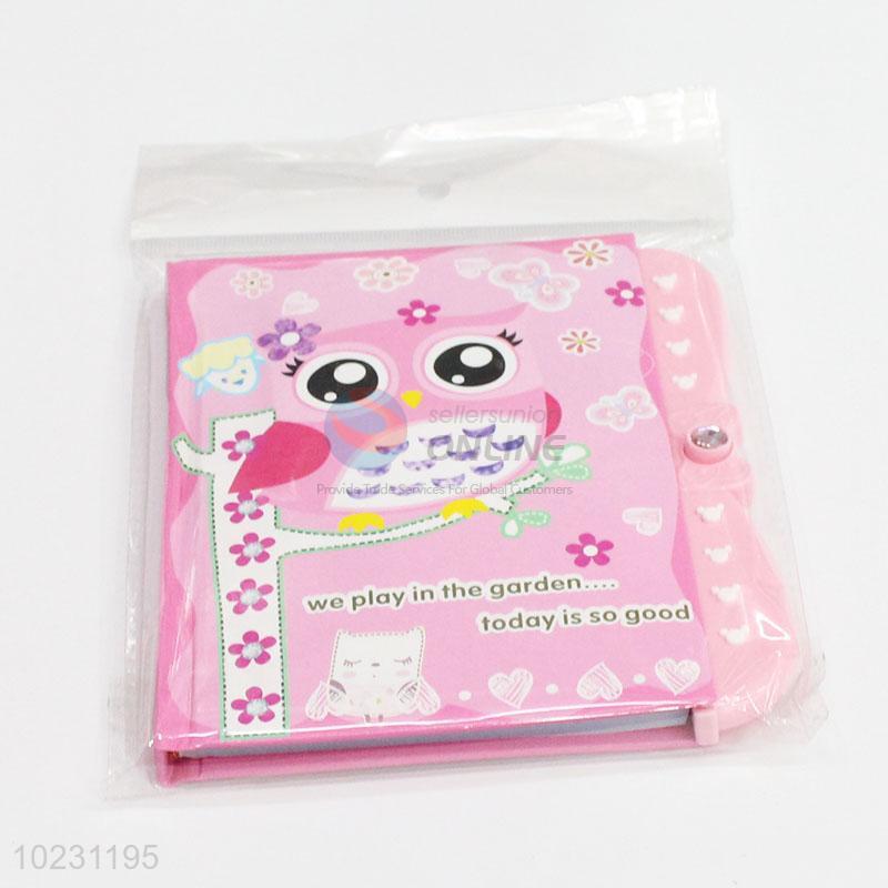 Pink Owl Printed Kids Cardboard Cover Dairy Notebook with Password