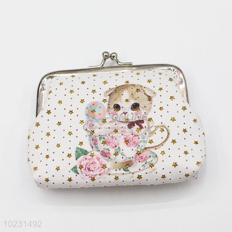 Cute Style Cat and Flower Pattern Coin Purse Lady Wallet Clutch Bag