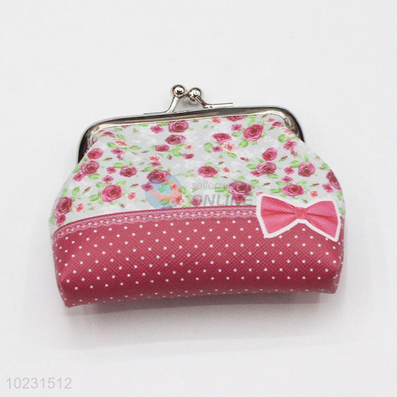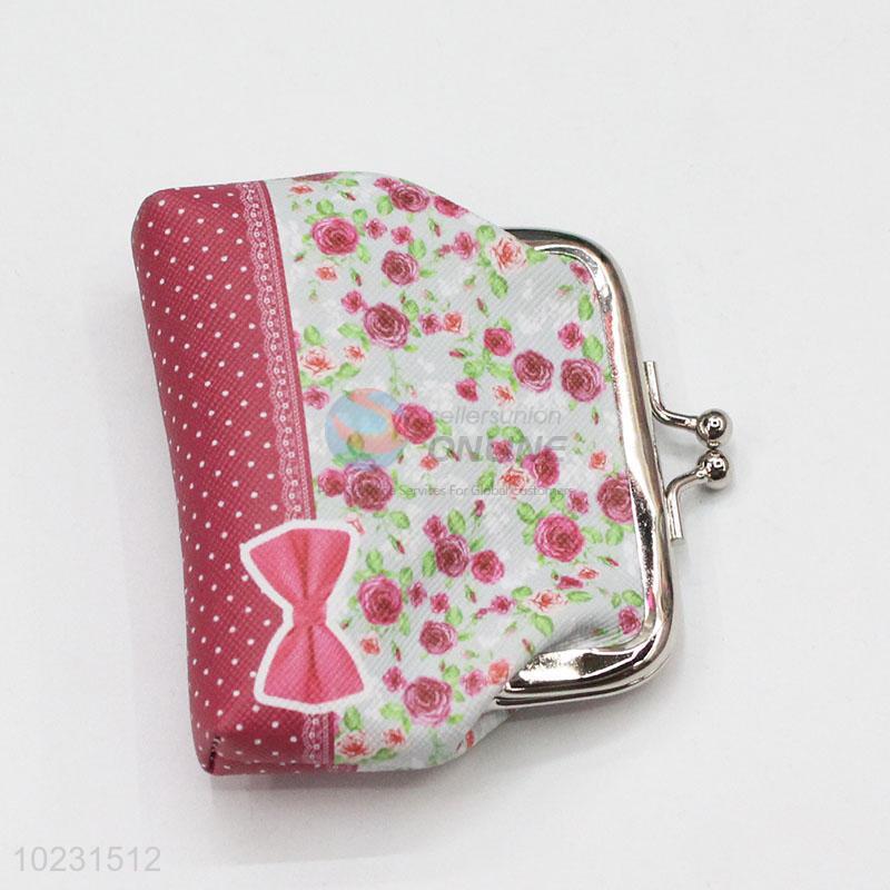 Rose Flower Pattern PVC Coin Bag Mini Purse for Women