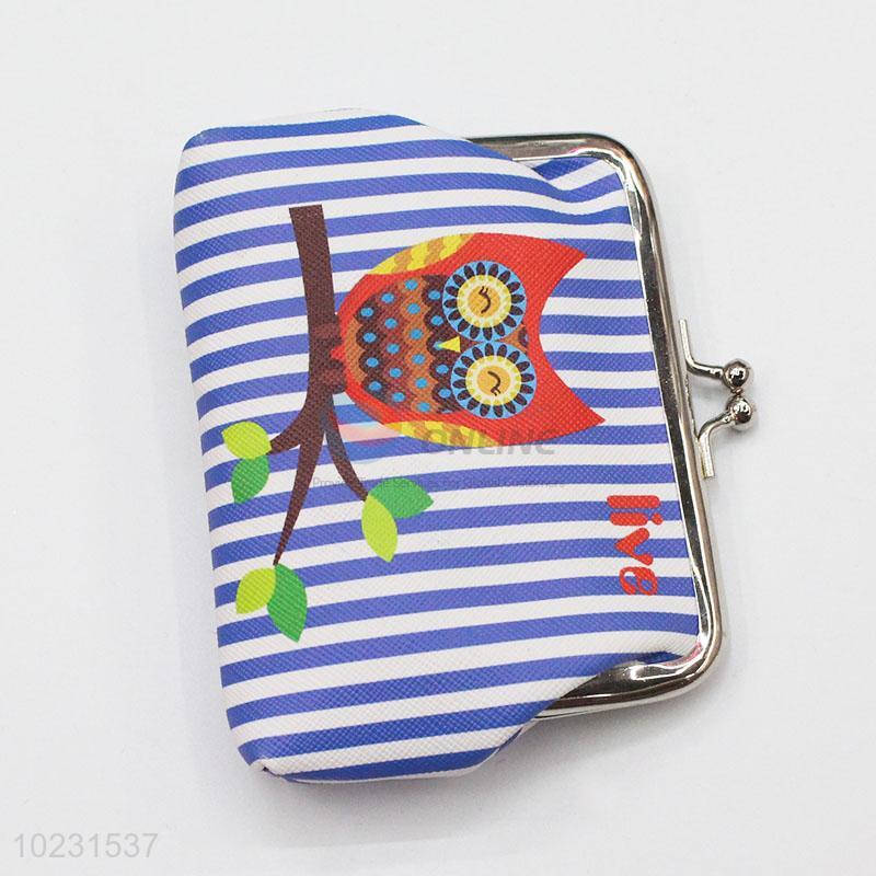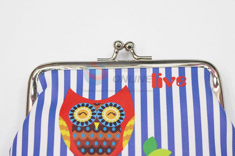 New Lovely Owl Printed Blue Striped Pattern PVC Coin Bag