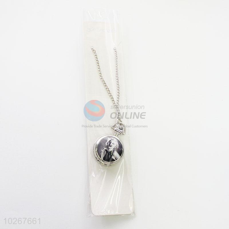 Marilyn Monroe Pattern Silver Metal Quartz Pocket Watches with Chain