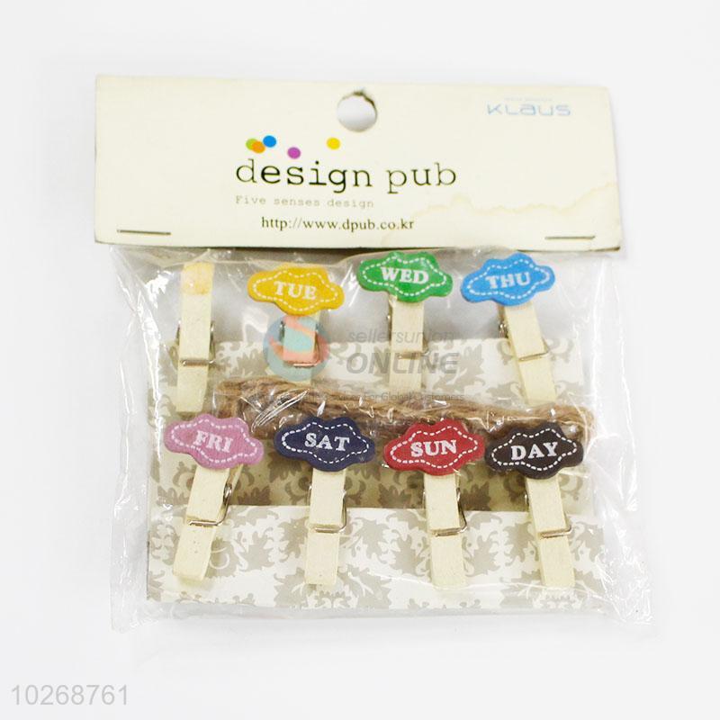 Mini Wooden Colorful Clip with Hemp Rope Pack of Small DIY Wedding Party
