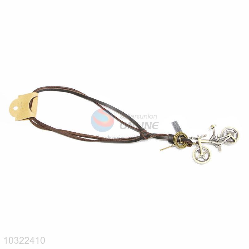 Popular Retro Cowhide Necklace with Bicycle Pendant for Sale