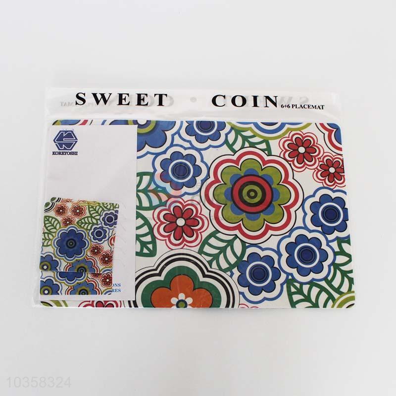 Flower printing plastic place mat,6+6pcs,28*43cm +9*9cm