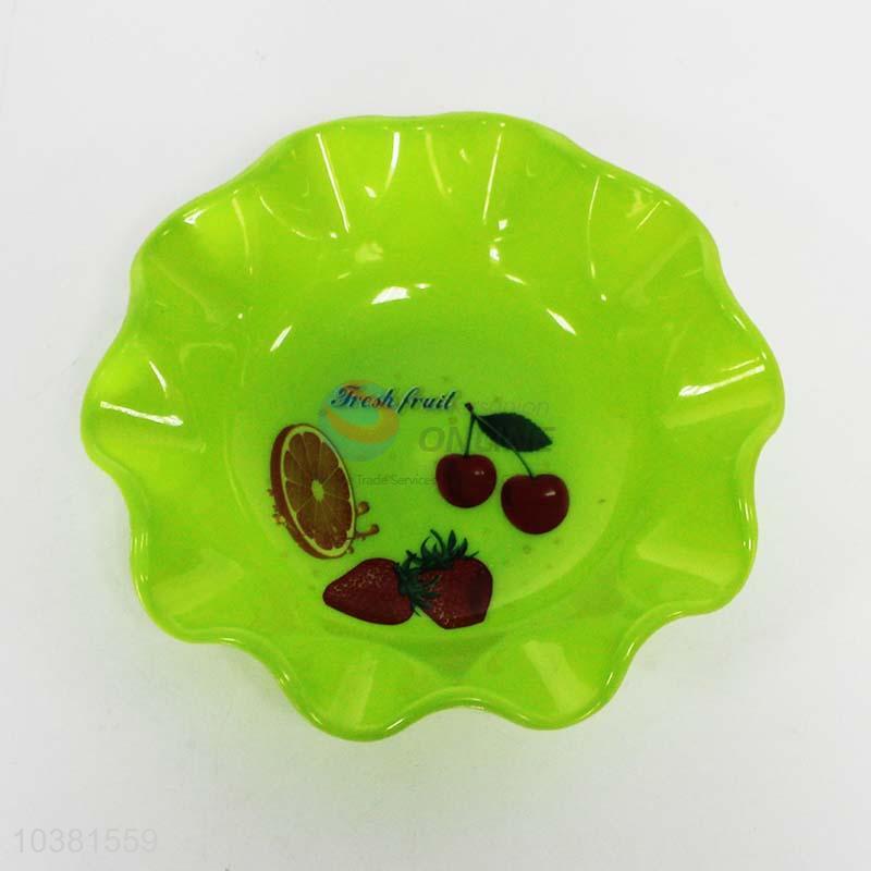 Green Color Flower Shaped Plastic Fruit Plate
