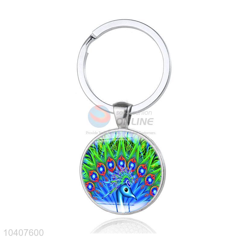 Peacock Round Metal Key Chain/Key Ring