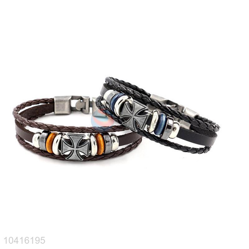 • High quality retro styles handmade mens leather bracelets with charms