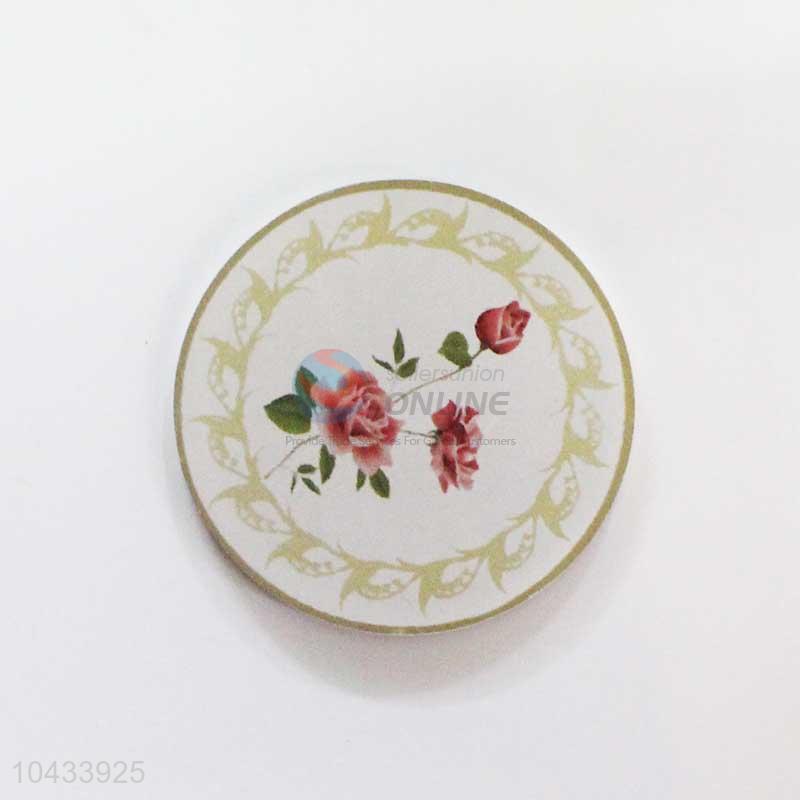 Flower Pattern Round Wood Cup Mat