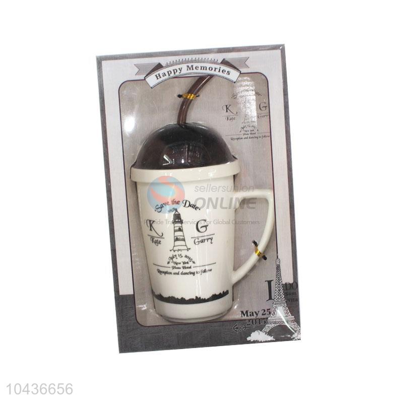 Creative Mugs Ceramic Coffe Cups with Straw