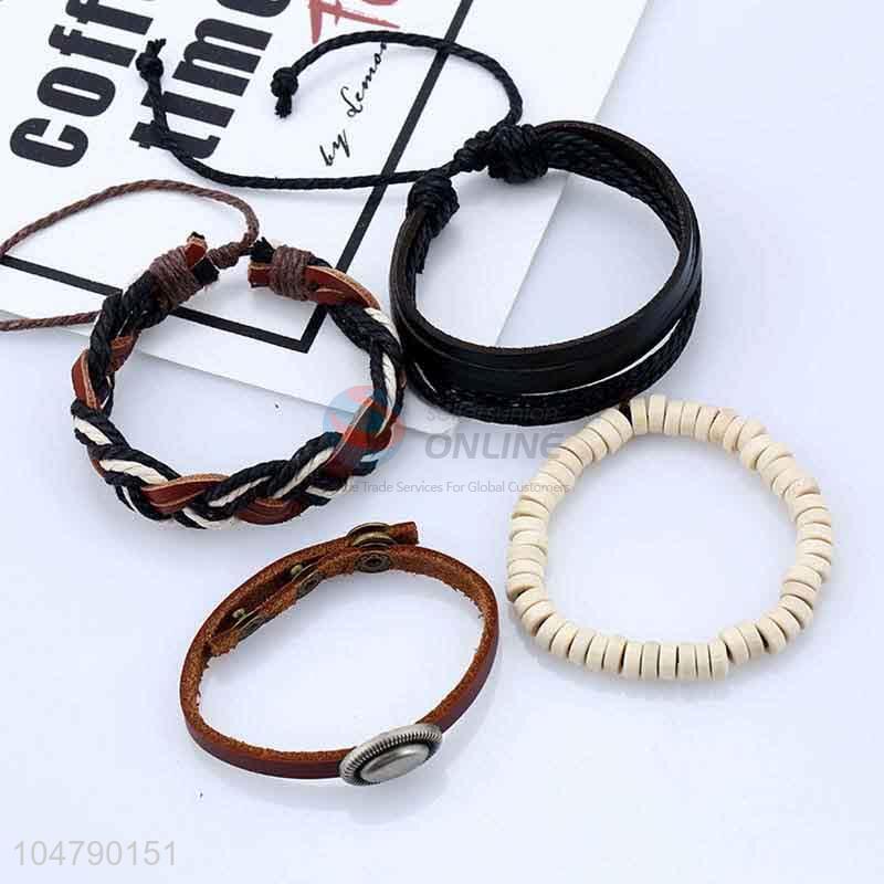 Customized wholesale cheap vintage braided leather bracelet set