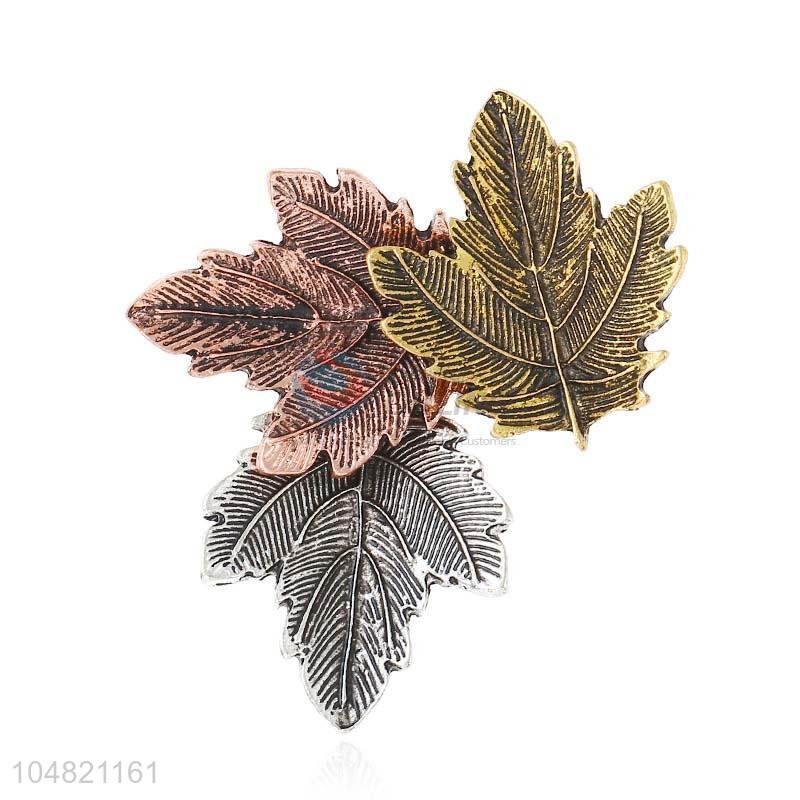 Fancy cheap leaf shape alloy brooch