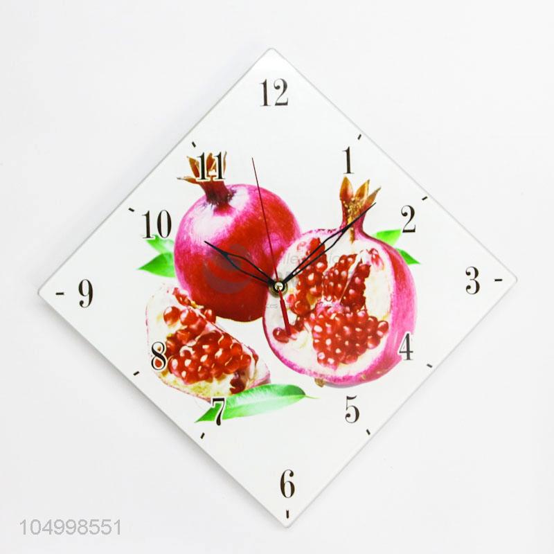 Low Price Rhombus Shaped Glass Wall Clock With Pomegranate Pattern