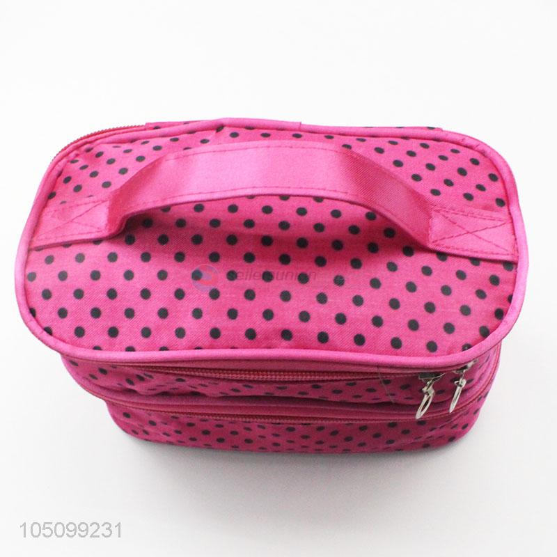 Portable Rose Red Low Price Dotted Cosmetic Bag for Sale
