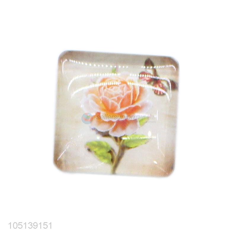 Low price home decor square flower pattern glass epoxy fridge magnet