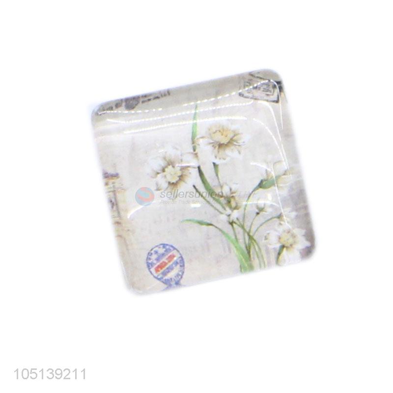 China OEM square flower pattern glass crystal fridge magnet
