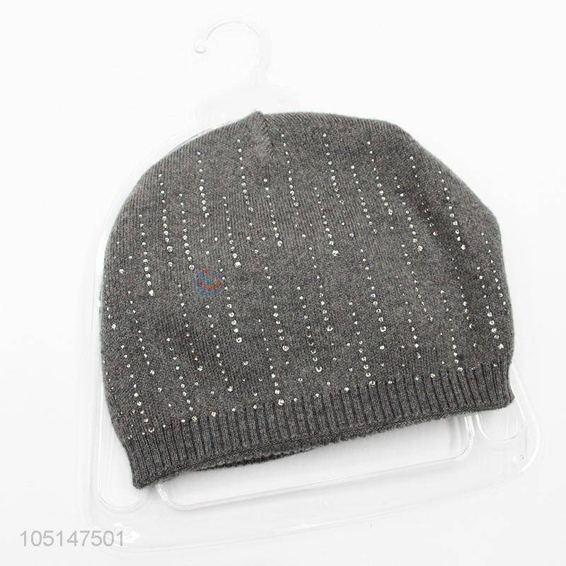 Wholesale Comfortable Adults Customized Wool Knitted Double-Deck Winter Hat with Rhinestone Decoration