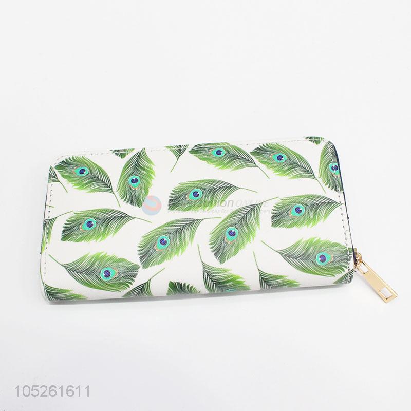 Peacock Feather Printed PU Leather Clutch Wallet for Women