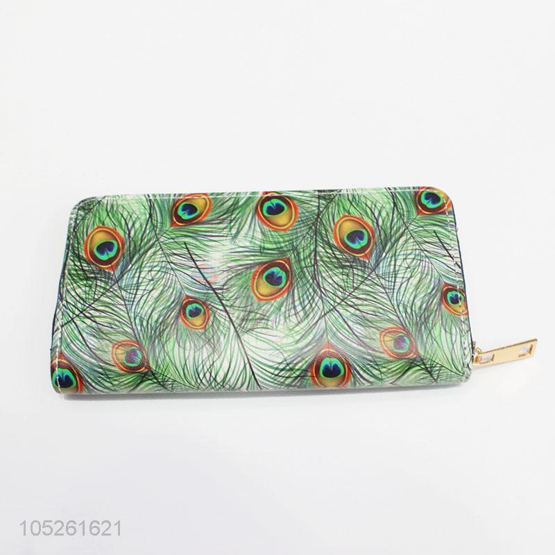 Portable Purse PU Leather Casual Lady Peacock Feather Pattern Cash Wallet