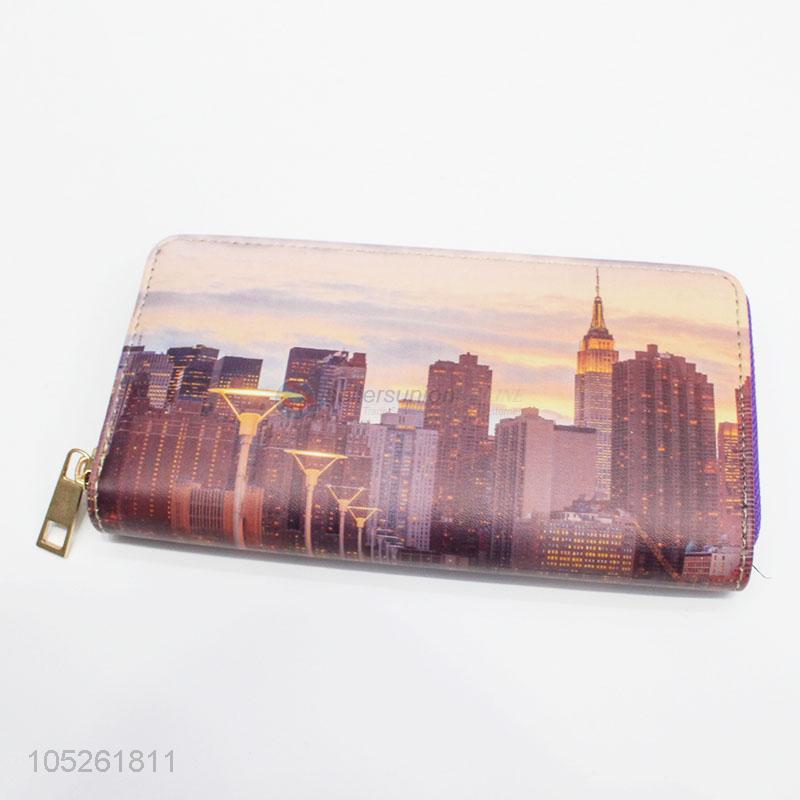 Famous Building Pattern Women Short PU Leather Long Wallet