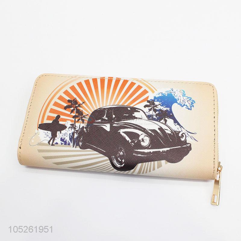 Luxury PU Leather Vintage Car Printed Clutch Purse Wallet for Women