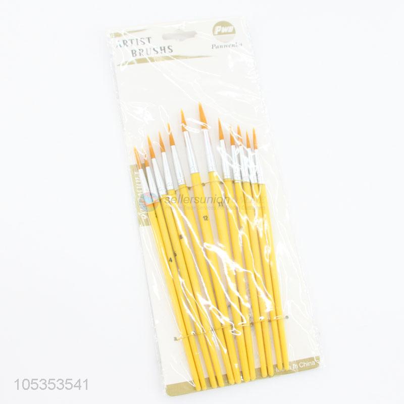 Promotional Item 12pcs Yellow Paint Brushes for Art Student Drawing