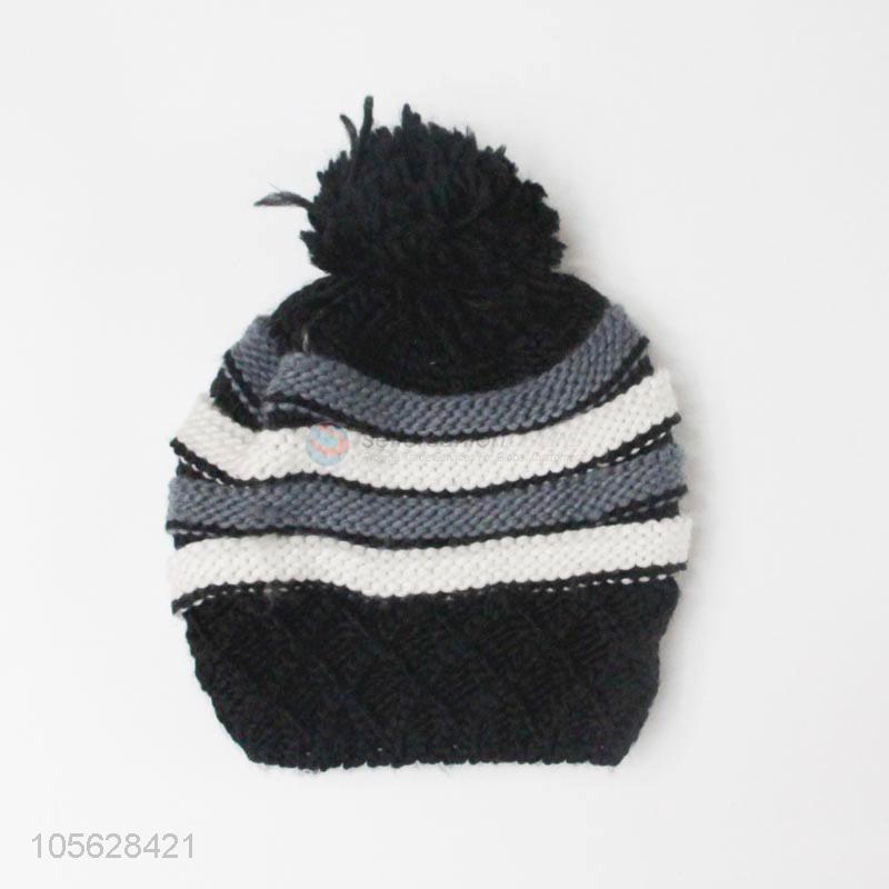 Custom Pom Pom Knitted Cap Ladies Winter Warm Hat