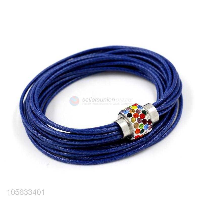 China maker handmade multitier braided rope bracelet with colorful stones