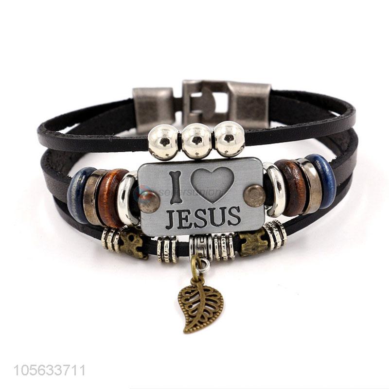 Premium quality multitier men leather bracelet vintage braided bracelet