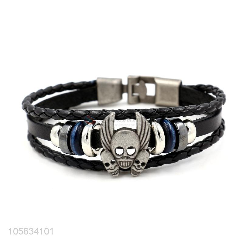 Factory promotional multitier men leather bracelet vintage braided bracelet