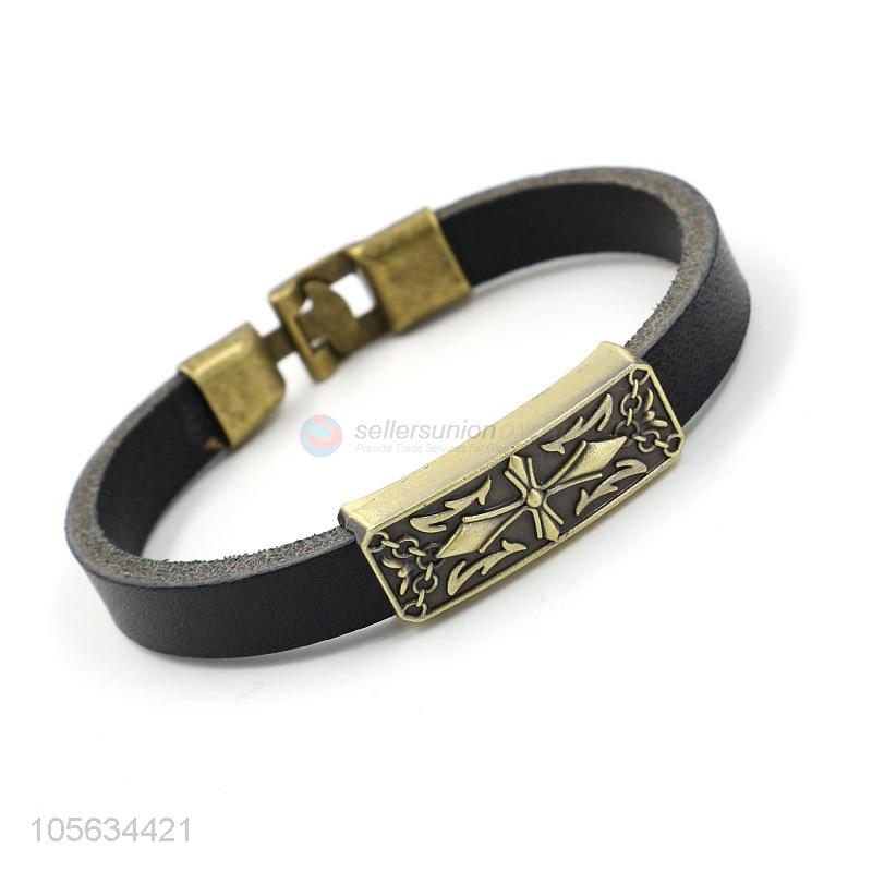 New items handmade retro genuine leather bracelet with anchor charms